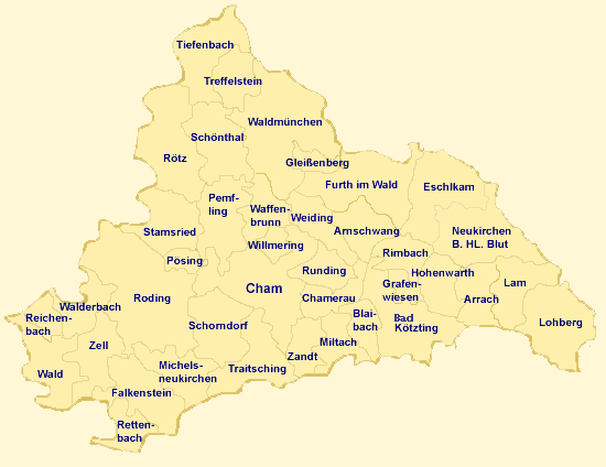 Der reguläre Amtsbezirk des Finanzamts Cham mit seiner Außenstelle Bad Kötzting liegt im Nordosten Bayerns. an der Grenze zur tschechischen Republik.